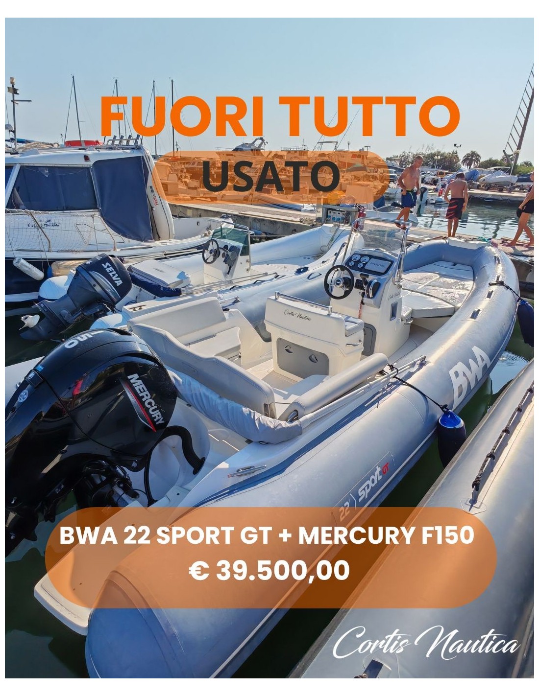 Battello BWA Sport 22 GT da mt. 7.00 x 2,75 , peso kg. 800, portata 13 persone, dotata delle seguenti dotazioni standard: